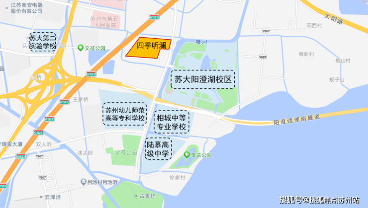 四季听澜的地理位置非常优越,位于苏州园区金鸡湖向北第一站的阳澄西湖教育组团板块。这里不仅毗邻园区、高铁新城、青剑湖、相城主城四大都市核心CBD,还坐享内外畅达的交通路网。中环北线、太阳路高架与苏州北站高架路及济学路共同组成两横两纵路网格局,后期随着阳澄湖星济隧道的通车,四季听澜可以瞬间抵达园区湖西。同时,项目紧邻地铁8号线号线号线无缝换乘,出行非常方便。