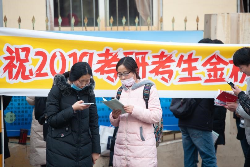 2018年12月22日,山东烟台,第十中学考点,准备参加研究生考试的考生正在复习。视觉中国