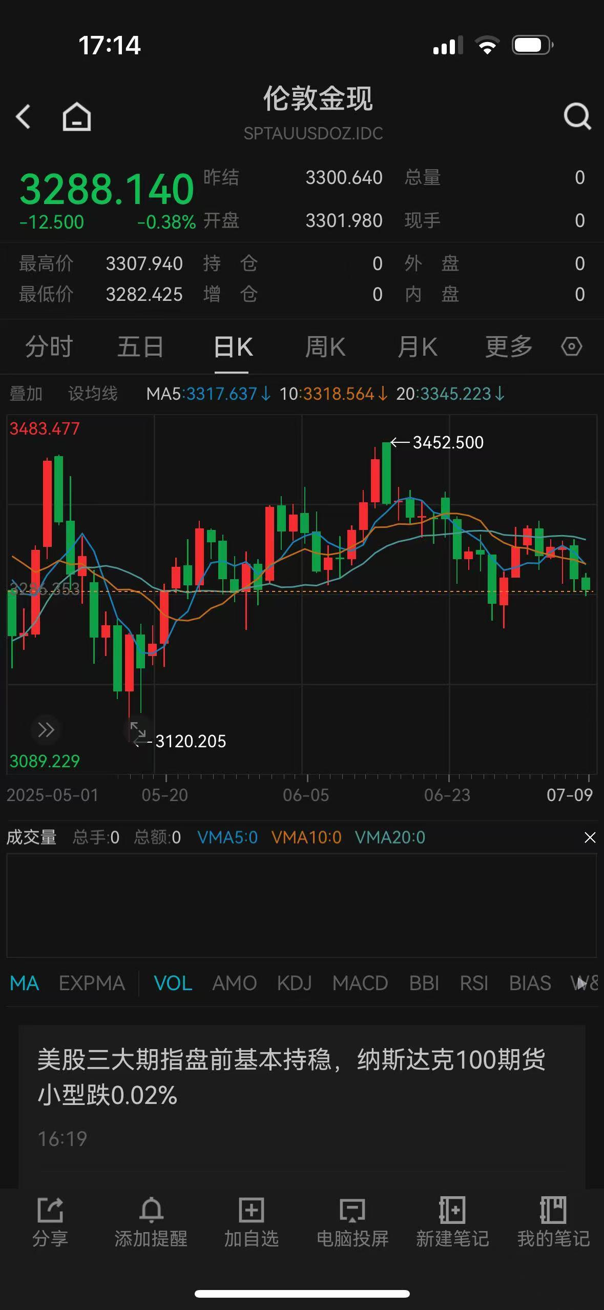本周以来,国际黄金在周一盘中大幅震荡后,7月8日,现货黄金再度大幅调整,盘中一度跌破3300美元/盎司,收盘跌逾1%。7月9日,现货黄金继续下挫,仍在3300美元/盎司下方。