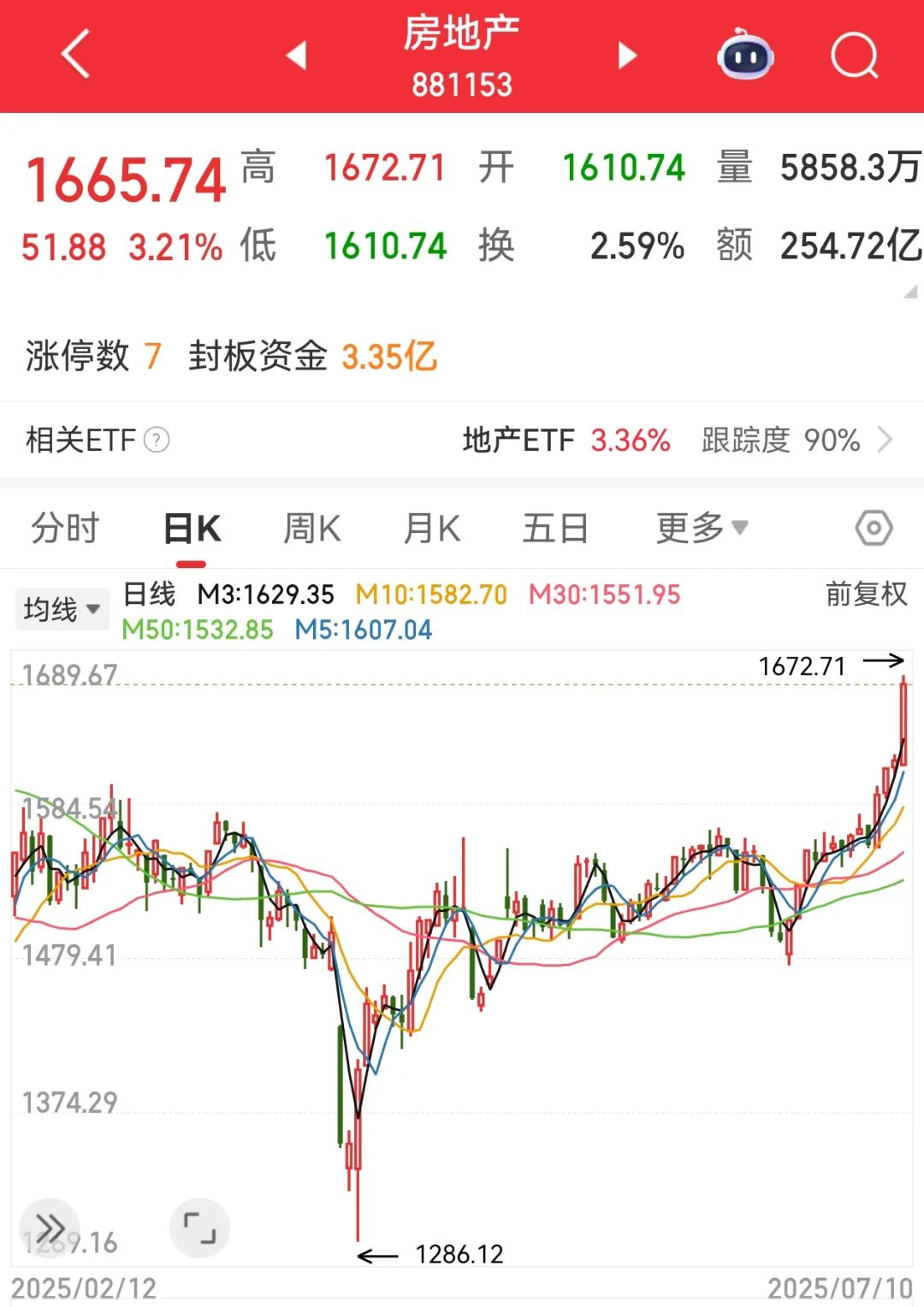 7月10日,地产股集体拉升,A股及港股上市房企股价纷纷异动。截至当日收盘,A股房地产板块成分股中,华夏幸福、光大嘉宝、绿地控股等多只股票涨停,其中南山控股7天4板,渝开发4连板。港股方面,龙光集团盘中一度涨超80%,当日收盘有近20家公司股价的涨幅超10%。