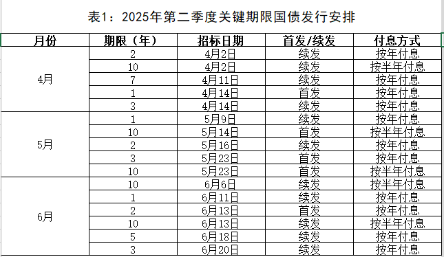 财政部今日公布2025年第二季度关键期限国债、短期国债、超长期一般国债、储蓄国债、中央金融机构注资特别国债发行有关安排。