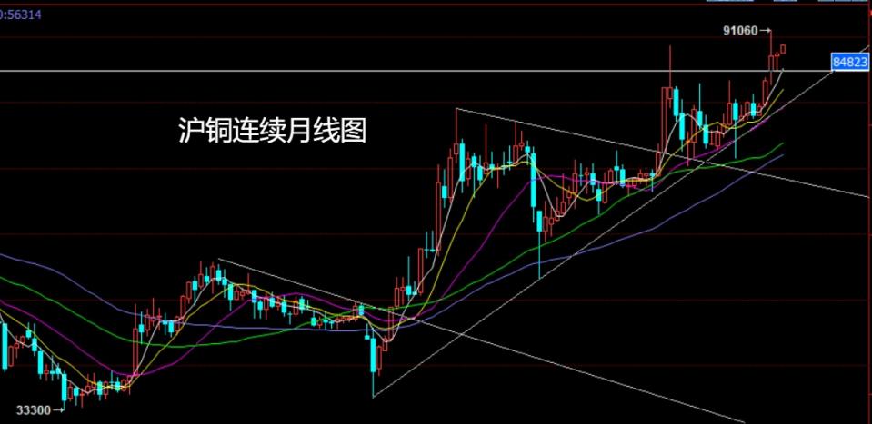 沪铜连续市场11月初行情开盘在87166的位置后行情先回落,月线的位置后行情强势拉升,尾盘月线的月线高点后整理,月线的位置后,月线以一根下影线很长的锤头形态收线,而这样的形态收尾后,12月的行情有继续看多需求,点位上,月初88000多止损87700,目标看88500和89000和89500和90000.